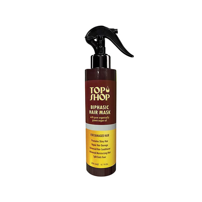 ماسک مو دوفاز روغن آرگان Top Shop 200ml، حاوی روغن گیاهی آرگان میباشد که موهای آسیب دیده با رنگ و ابزار حرارتی را ترمیم میکند و با رطوبت رسانی و ترمیم موهای شما میتواند زندگی دوباره را به موهای شما بازگرداند و درخشش باورنکردنی به موهای شما میدهد و دیگر نیاز نیست نگران موهای آسیب دیده در قسمت انتهایی موهای خود باشید زیرا روغن آرگان و گلیسیرین بکار رفته در این محصول میتواند آنها را آبرسانی و ترمیم کند. این محصول به افرادی که موهای آنها دارای آسیب کمتری میباشد نیز پیشنهاد میشود زیرا مانع از آسیب دیدگی موها و دهیدراته شدن موها میشود.