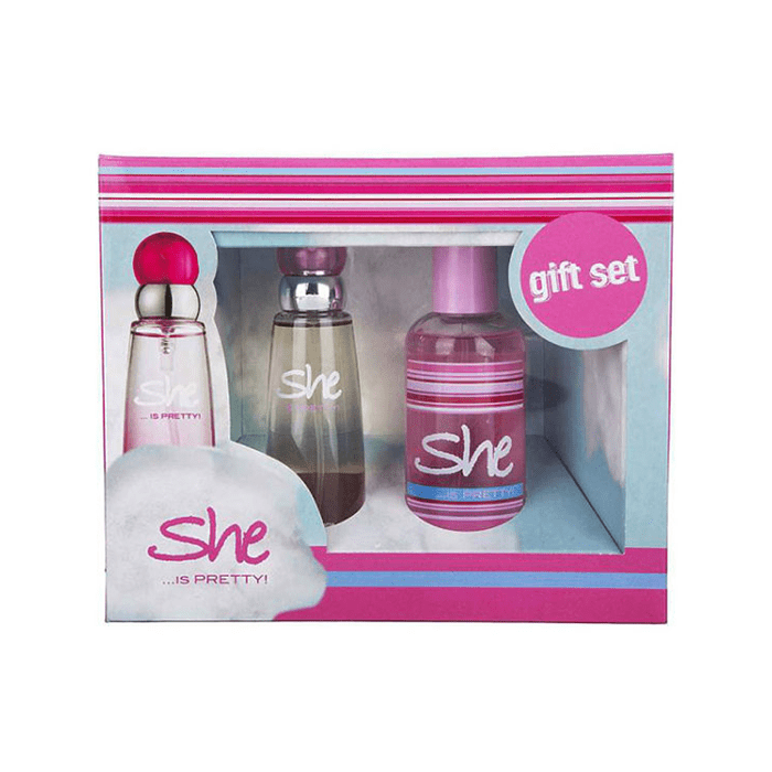 ست کادویی ادو تویلت و بادی میست زنانه پرتی She، در پکیجی بسیار زیبا برای کسانی که دوست دارند، دوستان و عزیزان خود را غرق لبخند ببینند طراحی و ارائه شده است و برند شی ترکیه این قسمت از طراحی محصول خود را به آنچنان به خوبی انجام داده است که به محصولی برای هدیههای کوچک بدل شده است و با داشتن این محصول شما میتوانید عطری دوست داشتنی را برای همیشه با خود همراه داشته باشید.