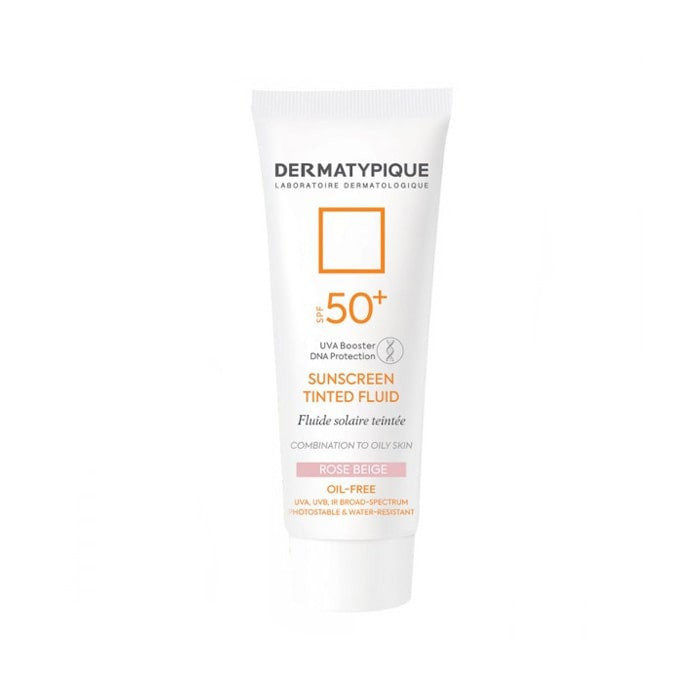 فلوئید ضد آفتاب رنگی رز بژ مناسب پوست چرب Dermatypique SPF50، علاوه بر محافظت کامل پوست در برابر اشعههای مضر آفتاب، پوششی یکدست