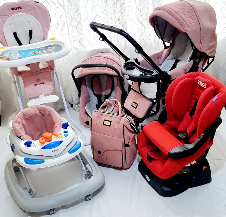 ست کالسکه ، کریر، صندلی غذا, صندلی ماشین و کوله پشتی ۶تکه دلیجان دخترانه