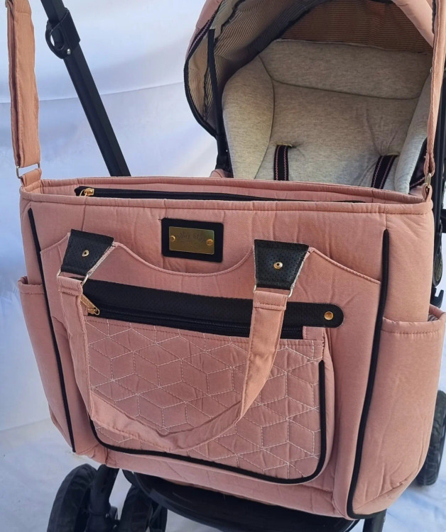 ست کالسکه و ساک لوازم رنگ گلبهی