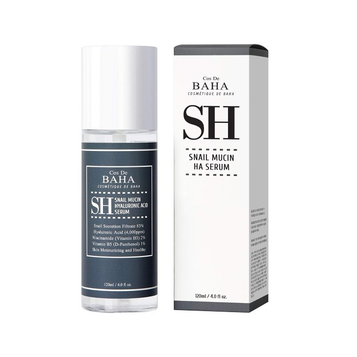 سرم موسین حلزون و هیالورونیک اسید Cos De BAHA، دارای خواص ضد پیری است، تسکین دهنده پوست است، بافت آسیب دیده پوست را ترمیم و احیا میکند، باعث بازیابی هیدراتاسیون پوست میشود، ضد چروک قوی است، پوست را انعطاف پذیر و سالم نگه میدارد، با ایجاد سد رطوبتی از تبخیر آب پوست و خشکی آن پیشگیری میکند، باعث تغذیه پوست میشود و روشن کننده و ضد لک است.