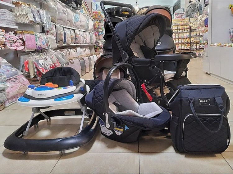 دلیجان مشکی دسته محکم و متحرک برای حمل کودک و استفاده بعنوان صندلی غذا و ماشین