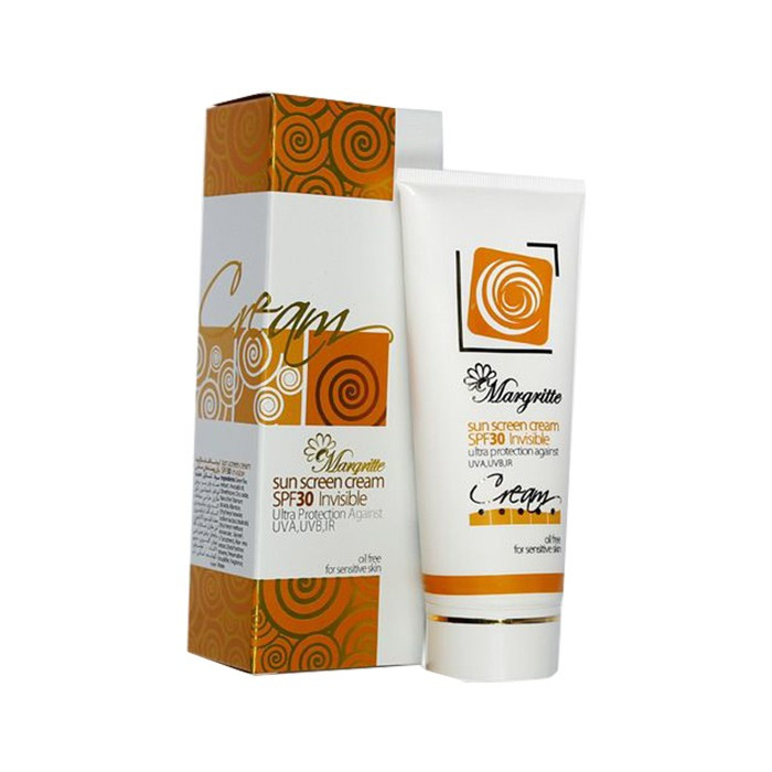 کرم ضد آفتاب مارگریت بر اساس عمل حفاظتی اکسیدهای روی و تیتان پایه ریزی شده است. وجود فیلترهای فیزیکی باعث می گردد که با انعکاس و تفرق نور عمل محافظت پوست از اثرات زیان بار نور خورشید انجام پذیرد. عدم جذب این فیلترها به داخل پوست خطر بروز آلرژی و واکنش های ناخواسته را از بین می برد علاوه برآن پایه این کرم سیلیکونی بوده و استفاده از فیلترهای فیزیکی در پایه سیلیکونی باعث می گردد که کرم مقاومت مناسبی در برابر تعریق و شستشو داشته باشد و عوارضی از نظر آلرژی و جوش زایی نداشته باشد. بنابراین استفاده از این کرم برای محافظت از پوست های حساس، آکنه ای و کودکان نیز توصیه می گردد. این محصول به راحتی بر روی پوست گسترده می شود و پس از چند دقیقه رنگ متعادلی بر روی پوست باقی می گذارد.