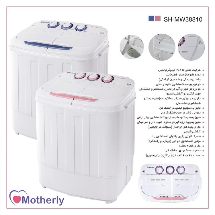دارای دو موتور مجزا جهت عملکرد همزمان سیستم شستشو و خشک کن.