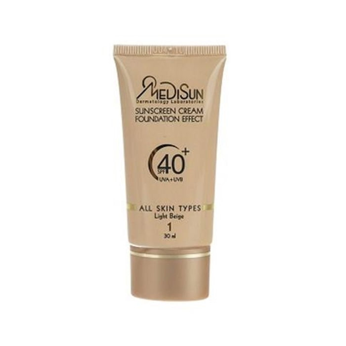 کرم ضد آفتاب بژ روشن با پوشش کرم پودر مناسب انواع پوست Medisun،
