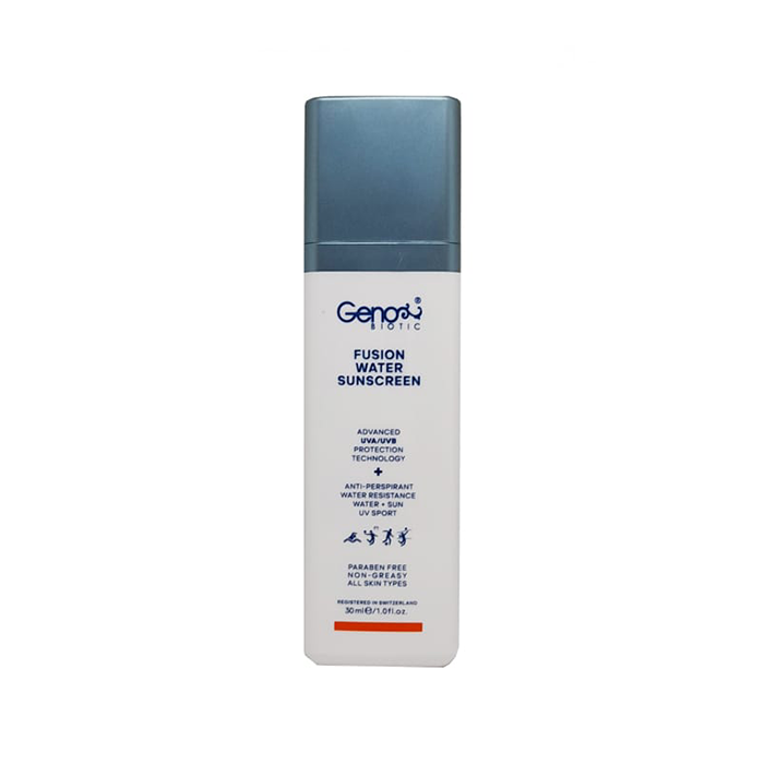 کرم ضد آفتاب فیوژن واتر GenoBiotic، مناسب انواع پوست و بدون ایجاد چربی و سنگینی به آسانی جذب پوست میشود.