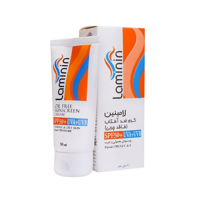 کرم ضد آفتاب بی رنگ فاقد چربی Laminin SPF50، از پوست شما در برابر اشعههای مضر UV خورشید محافظت مینماید.