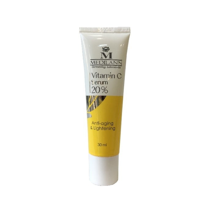 سرم روشن کننده ویتامین سی Medilann، حاوی 20 درصد ویتامین C به فرم لیپوزومال پایدار است.